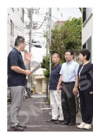 ▶️区の担当者から説明を受ける 右から、青木区議、くまき区議、田中町会長